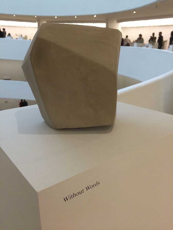 Photos of Without Words and A Copy of Jack Kerouac’s Typewriter by Jen Payne from “Suddenly This Overview,” by Peter Fischli and David Weiss at the Guggenheim Museum, April 2016. David Weiss quote from “The Pleasures of Misuse: An Interview With the Irreverent Swiss Artist Duo Fischli/Weiss,” Artspace, February 2016. (https://tinyurl.com/yc6cz5yh)