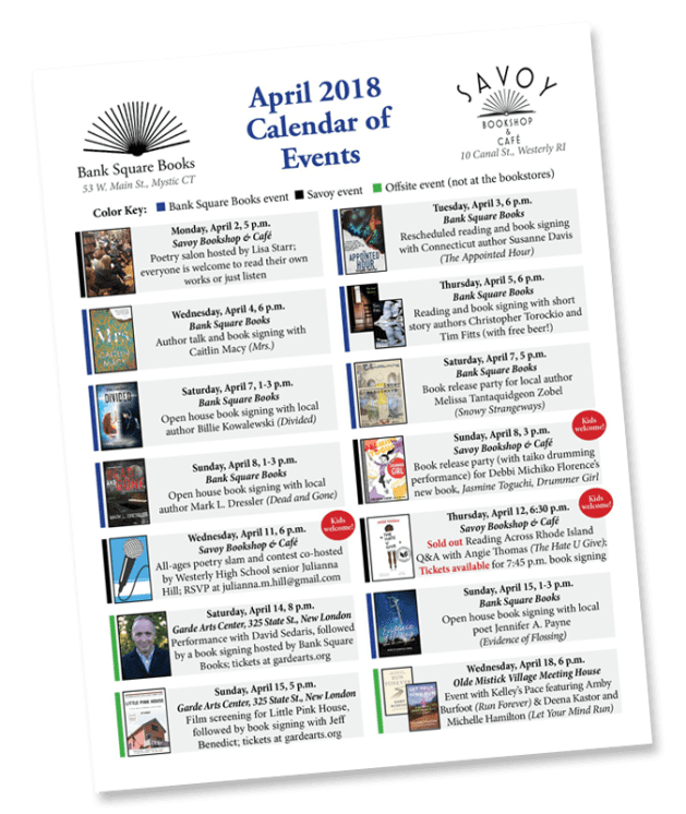 Bank Square Books, Mystic, Sunday, April 15, 1-3pm