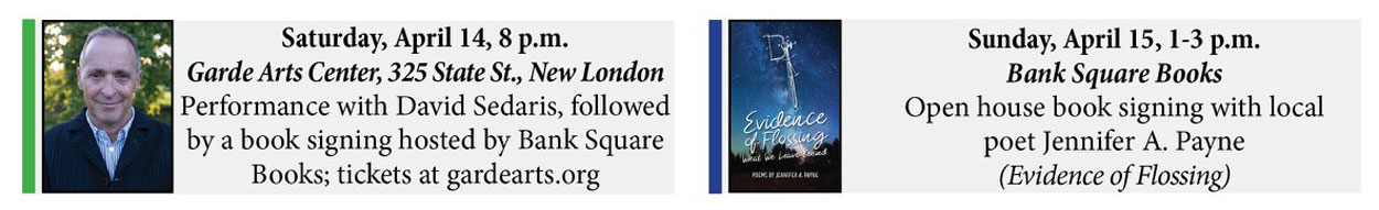 On Sunday April 15 from 1pm – 3pm, Mystic’s Bank Square Books will host Branford author and naturalist Jen Payne for a book signing featuring her book Evidence of Flossing: What We Leave Behind. Discover this curious collection of poems and photographs that NPR contributor David Berner calls “an unflinching account of our unshakeable relationship to the modern world…God, nature, and ourselves.” Bank Square Books is located at 53 West Main Street in the heart of downtown Mystic, Connecticut.