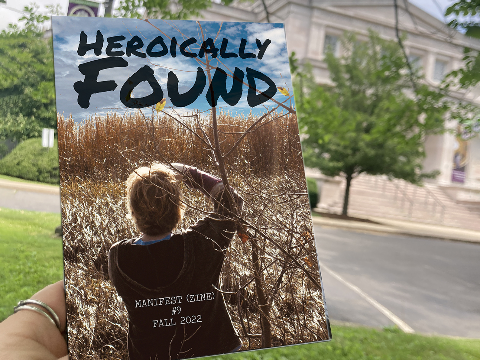 MANIFEST (zine): Heroically Found is part of THE EXCHANGE, a statewide Connecticut Artist Treasure Hunt on view, August 15 – November 1, 2022 (rain or sun). It includes GPS-tracking, QR codes, and adventuring to 15 unique public art installations by 23 participating artists. The designated sites can be accessed through a map with GPS coordinates found at www.SomethingProjects.net.