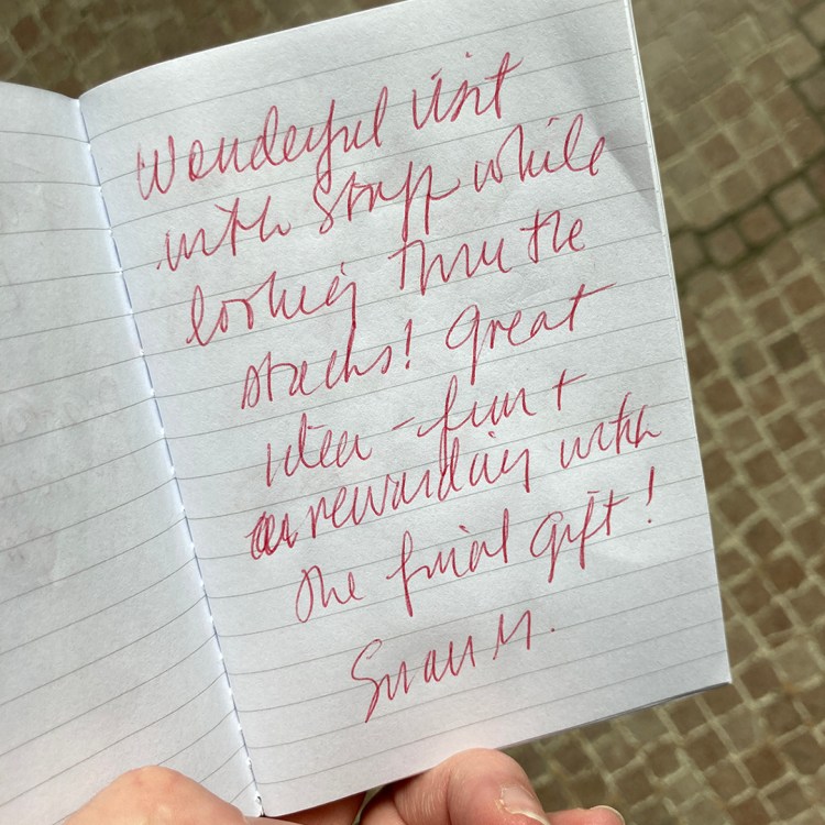 My project was called HEROICALLY FOUND and considered: “How do we find equilibrium when all seems lost?” Explore answers in this printed, hold-in-your-hands art installation. Follow the clues, take a copy, then leave something “found” in exchange.